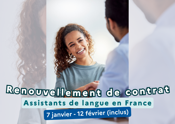 Visionnez l’enregistrement de la visioconférence sur le renouvellement de contrat qui s’est tenue le 22 décembre dernier, et consultez le site internet de France Éducation international pour plus d’informations sur les critères d’éligibilité et sur la procédure à suivre.